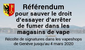 En Suisse, Les professionnels de la vape du canton de Genève auront eu de l’espoir jusqu’au bout ! En effet, un référendum avait été lancé pour contrer une modification de la loi prévoyant l’assimilation des produits de la vape aux produits du tabac. Malchance ou magouille, ils ont récolté 5760 signatures, mais plus de 700 ont été invalidées, alors qu’il en fallait 5294 .